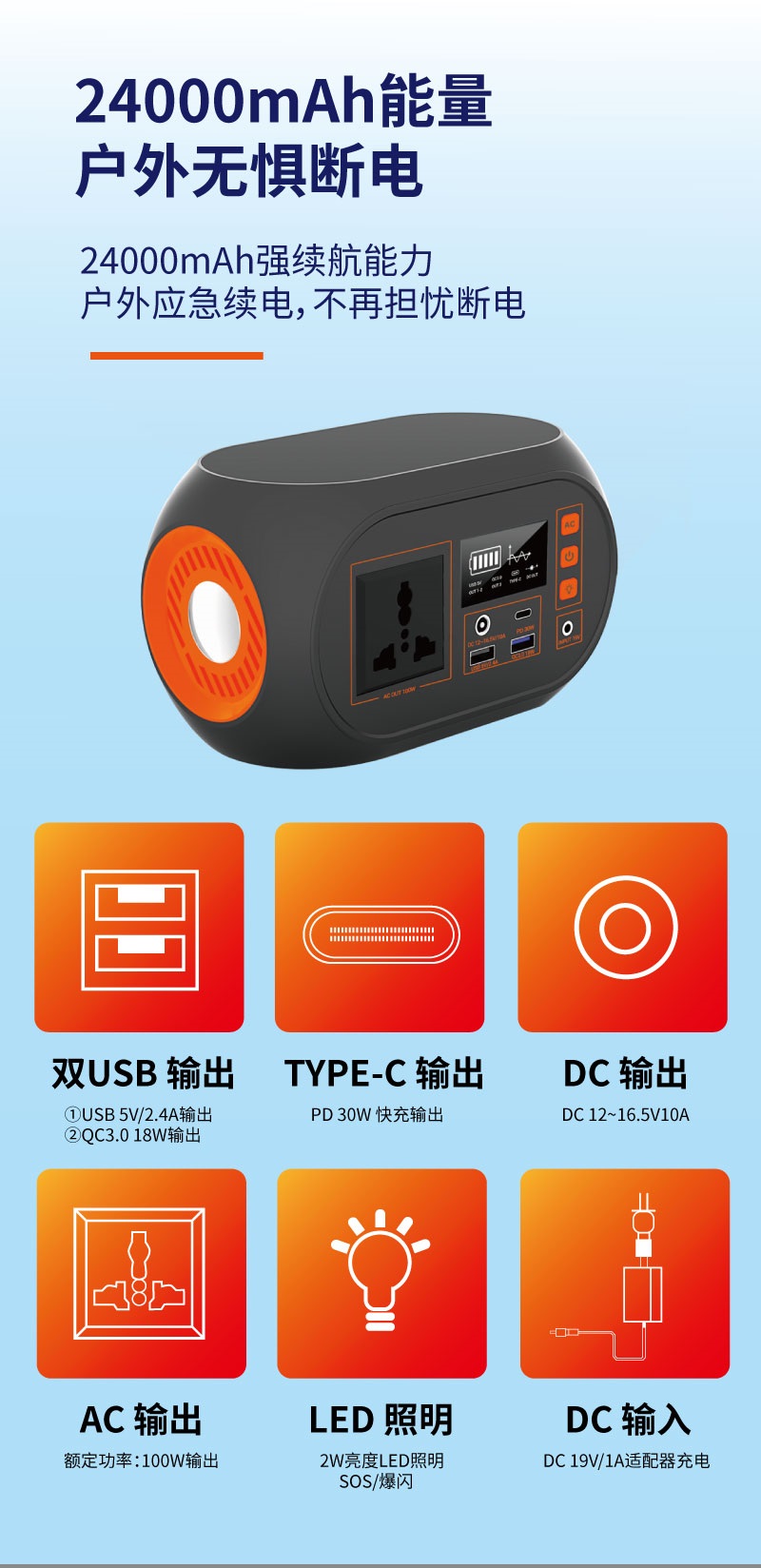 小容量戶外便攜應(yīng)急移動電源100W手機(jī)平板多功能儲能電源工廠批發(fā)