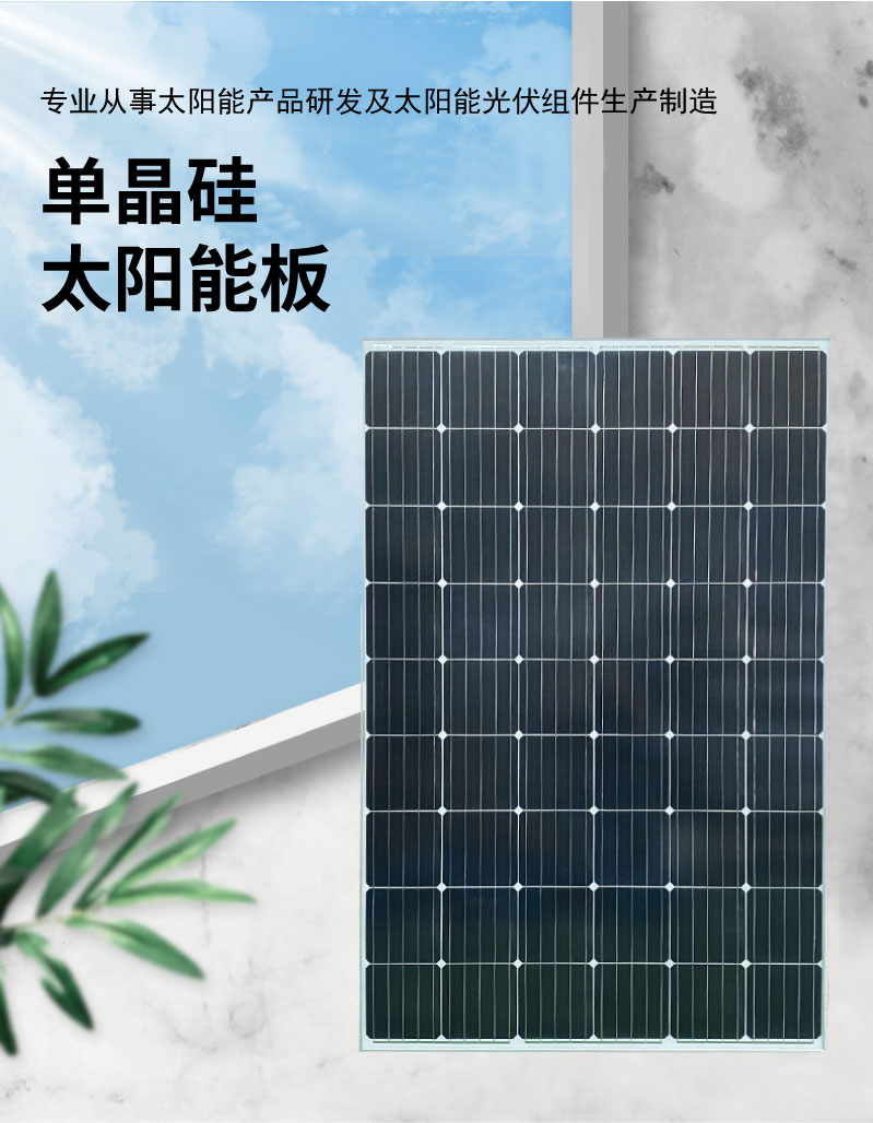 單晶硅太陽(yáng)能電池板鋁合金邊框單晶電池片210W家用照明工廠(chǎng)直供