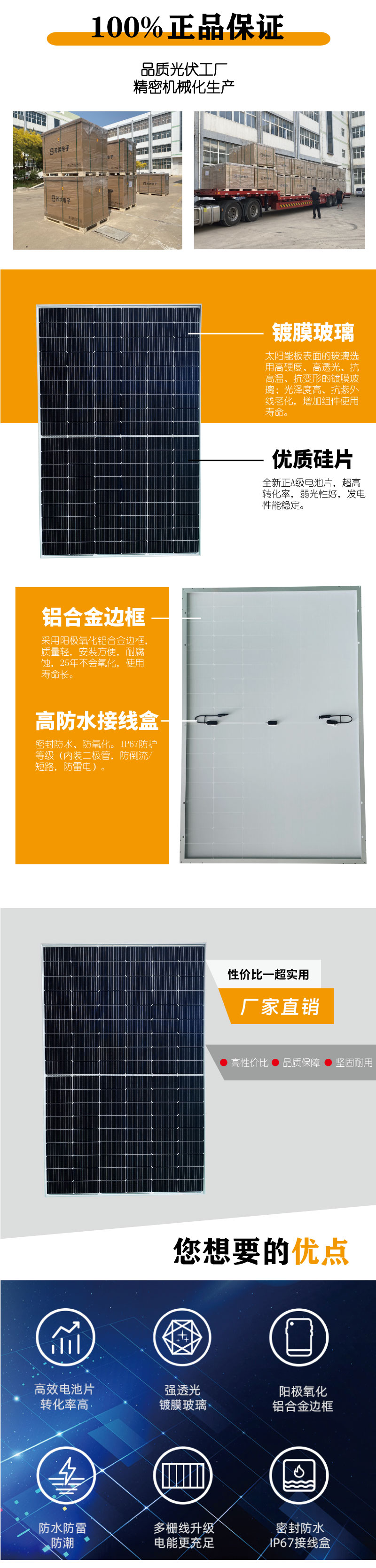 太陽能板410W鋁框?qū)訅汗夥M件家用光能太陽能充電板單晶硅光伏板