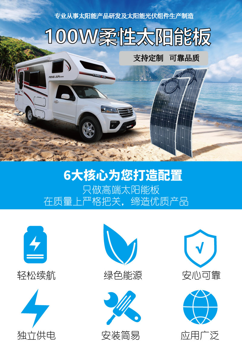 柔性太陽(yáng)能板單晶硅100W光伏發(fā)電板批發(fā)車頂太陽(yáng)能電池板18v充電